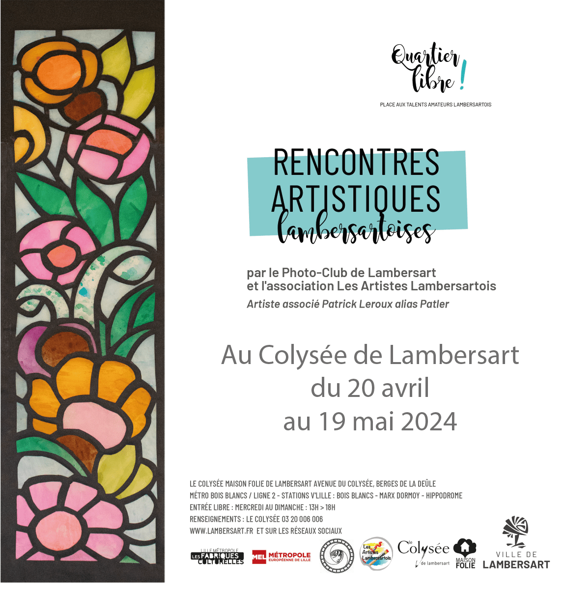 La Ville de Lambersart inaugure cette année « Quartier libre ! Place aux talents amateurs lambersartois » en invitant notre association et le Photo Club de Lambersart à accrocher leurs oeuvres aux cimaises du Colysée.