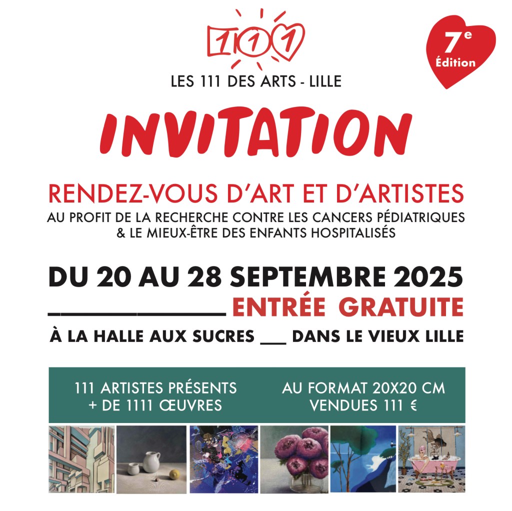 Babeth Baert, Nadia Maintier et Philippe Dupont ont été sélectionnés pour exposer à la Halle aux Sucres (voir sur un plan) pour les 111 des Arts. Exposition-vente d’oeuvres au profit de la recherche contre les cancers pédiatriques et le mieux-être des enfants hospitalisés.