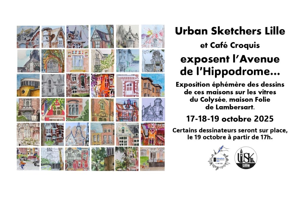 Les Urban Sketchers de Lille exposent à Lambersart les dessins réalisés dans cette ville. Au Colysée (voir sur un plan)