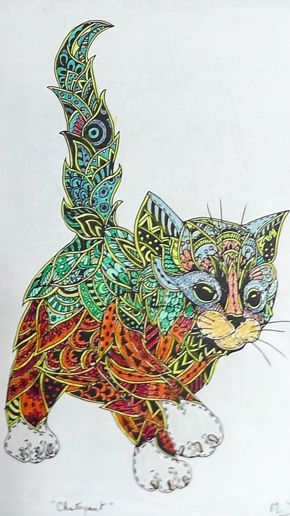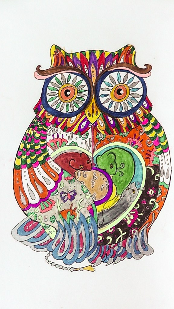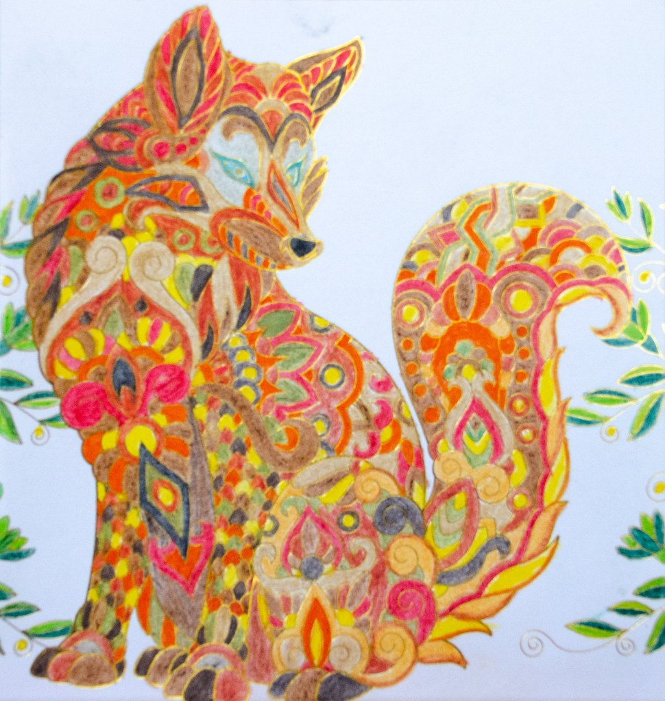 Je colorie des mandalas aux crayons aquarellables.